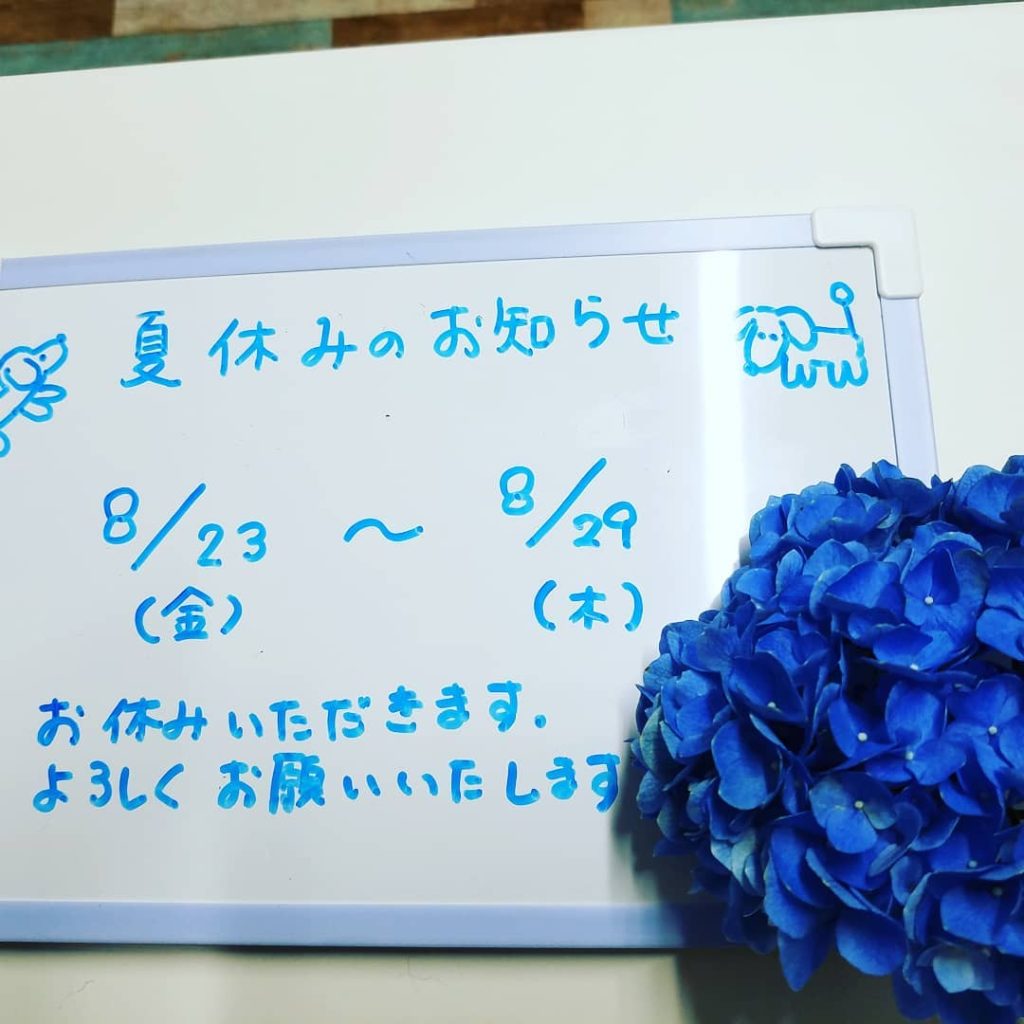 8月23日〜29日まで、誠に申し訳ありませんが、夏休みをとらせていただきます🍀よろしくお願いいたします🐶🏠