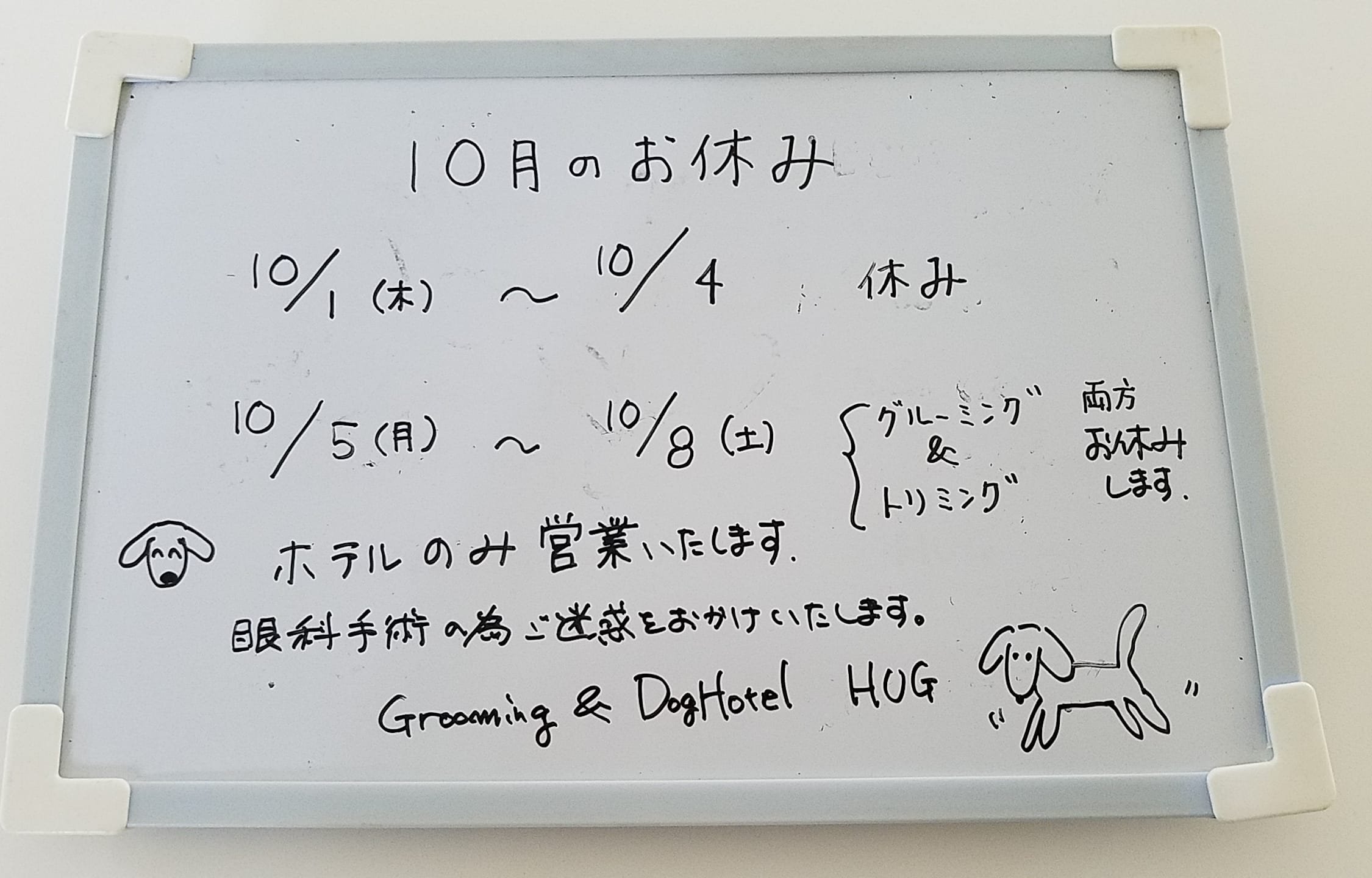 10/5よりドッグホテルのみ営業させていただきます。