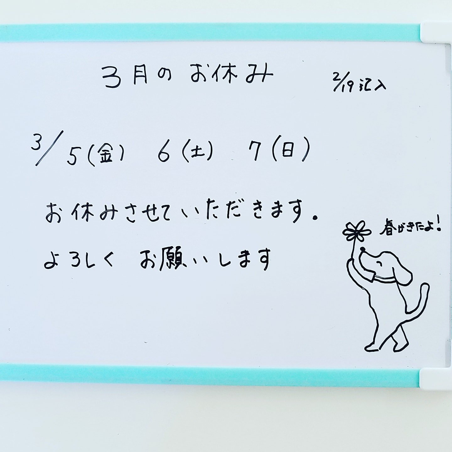 Hugの3月お休みを掲載いたしました。