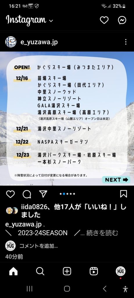 スキー場オープン予定日